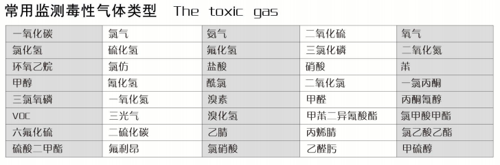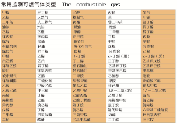 常見氣體檢測(cè)列表: